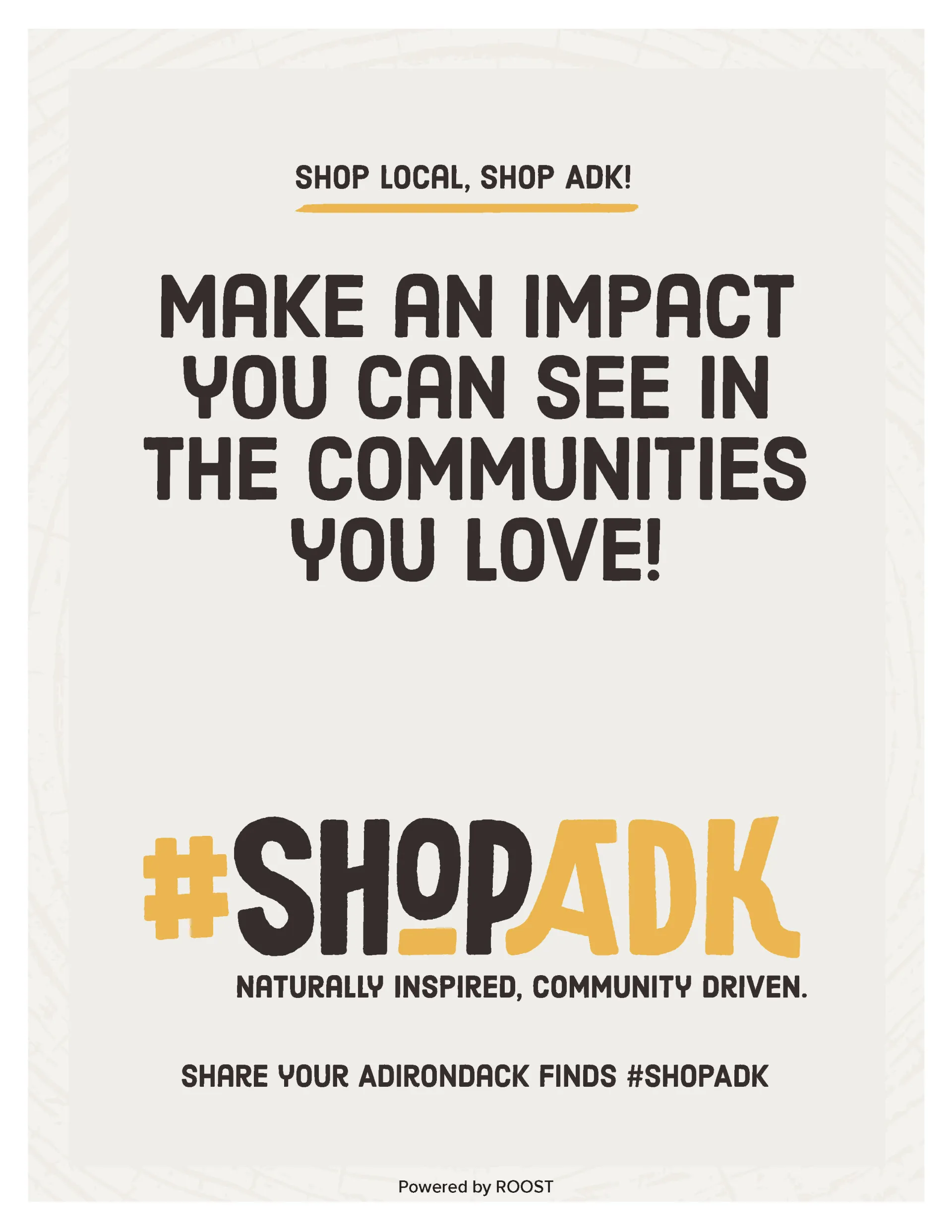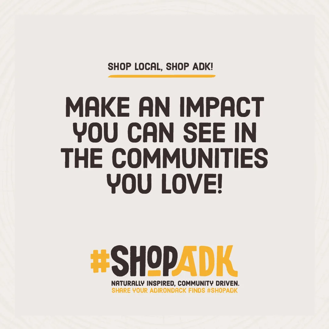 We encourage our communities to make a big impact throughout the year by shopping small and shopping ADK. By supporting locally owned businesses, we help our friends and neighbors, keep money within our region, and strengthen the Adirondack economy.