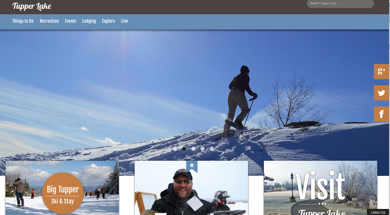 The redesigned site content is geared toward promoting the many leisure visitor experiences available in the towns of Tupper Lake and Piercefield, from hiking to shopping to historic sites, and includes a robust events calendar. The new site design is responsive, which means that it displays properly in all screen sizes and formats from desktop to tablet to phone.