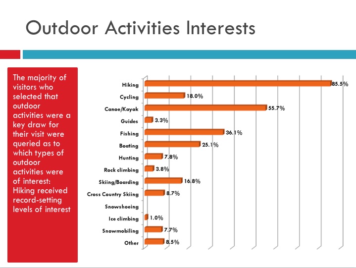 LAKE PLACID, adirondacks, usa - Visitors to the region were drawn by outdoor recreation, were slightly younger than the mean average from previous years and spent $83 for every occupancy tax dollar spent on marketing in 2014, according to the latest leisure travel information study.