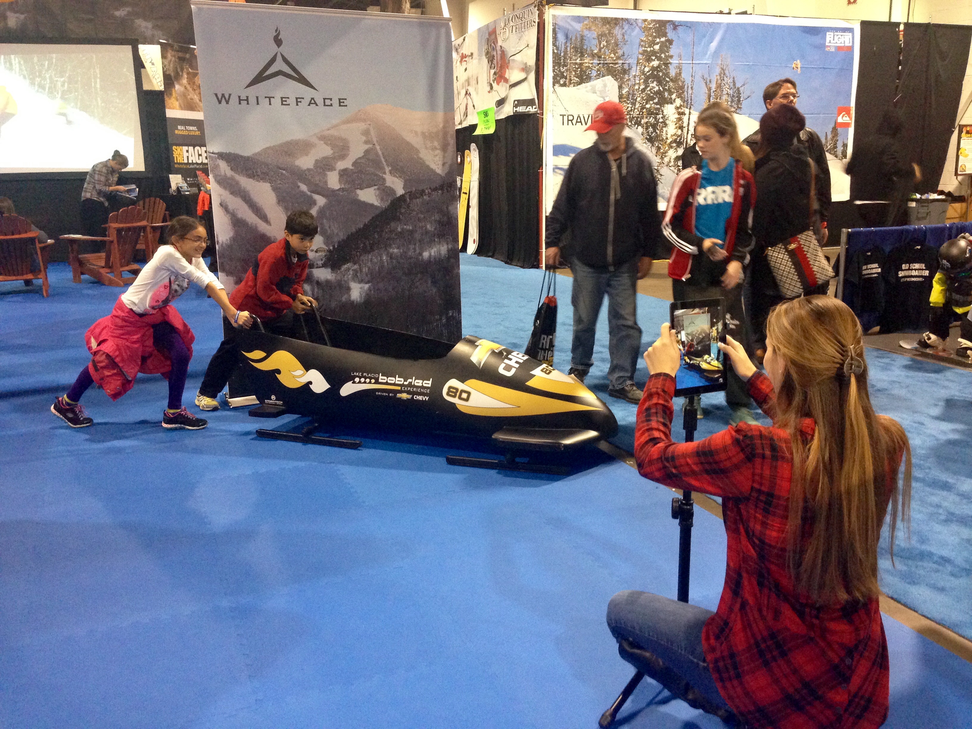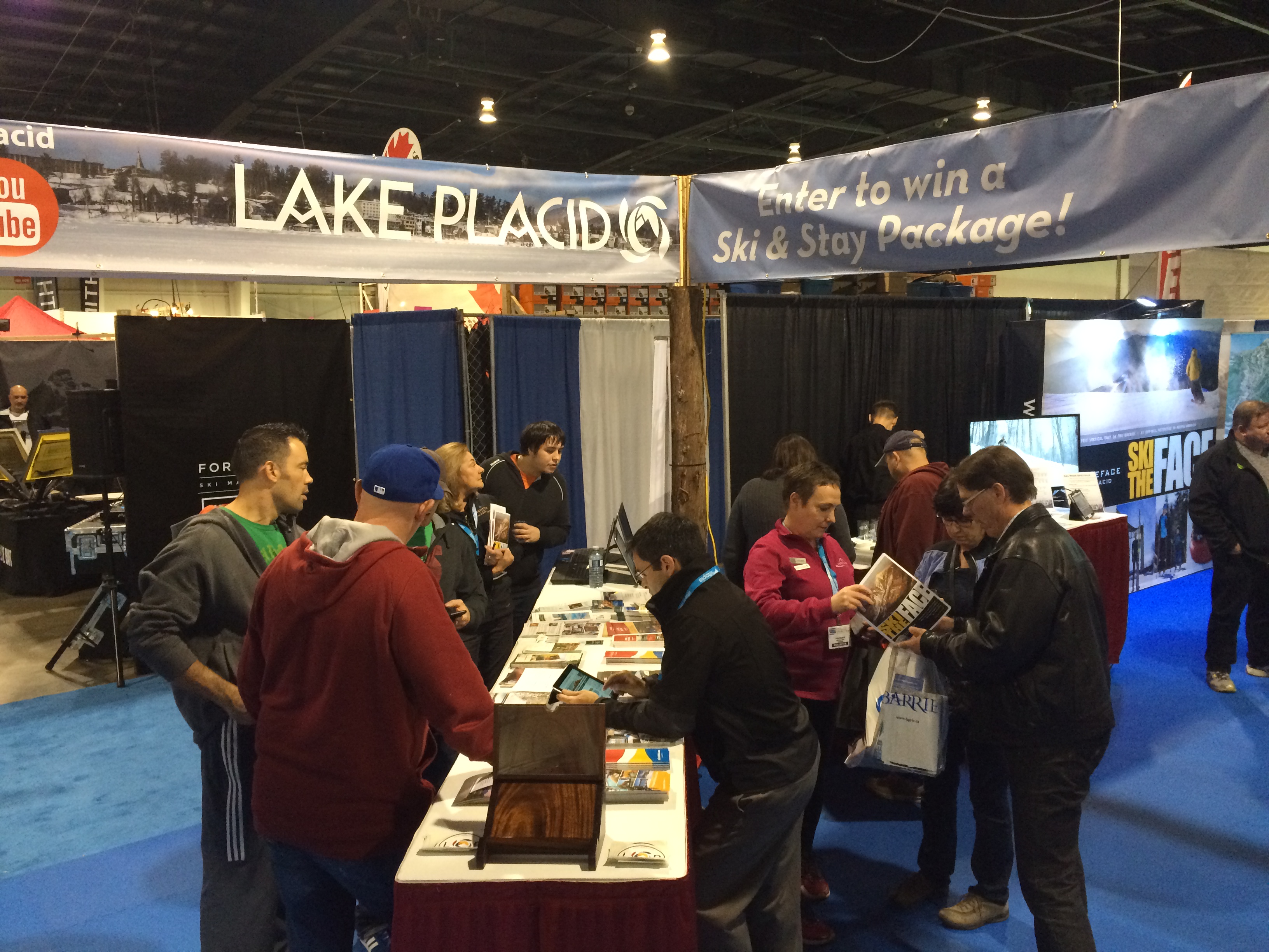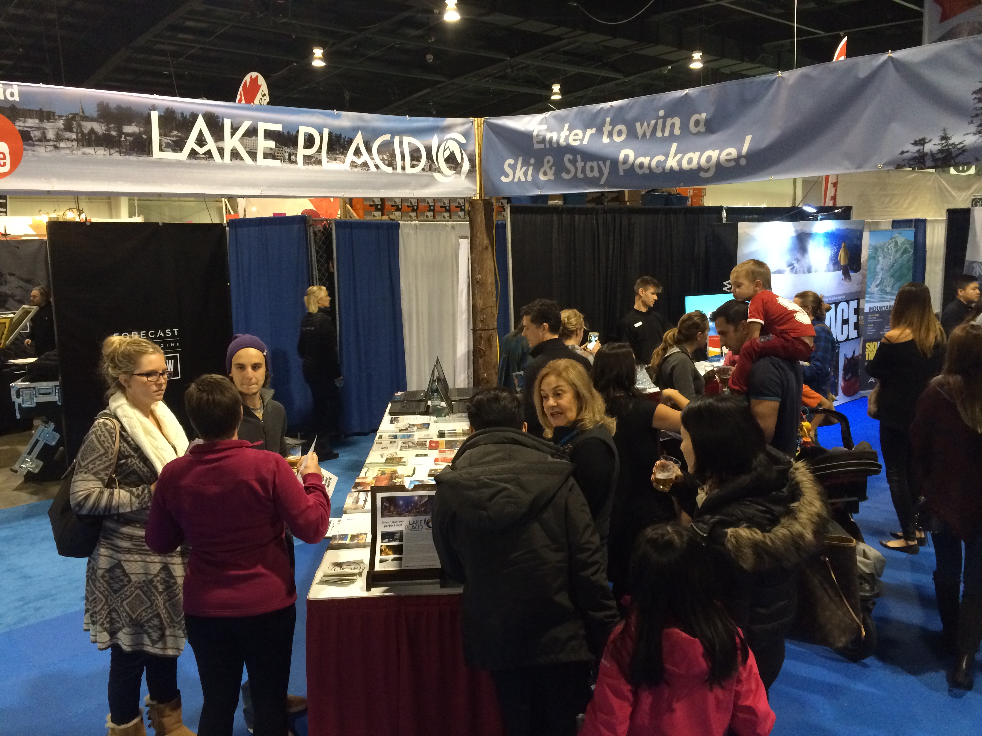 The group joined more than 130 vendors at the four-day Toronto Snow Show to talk to skiers and snowboarders getting hyped for the coming snow season. Our representatives interacted with more than 500 people, giving them information about the many lodging, dining, and activity options in and around Lake Placid and Whiteface, as well as giving free beer samples, showing videos of the area and giving them a photo opportunity in a real bobsled.