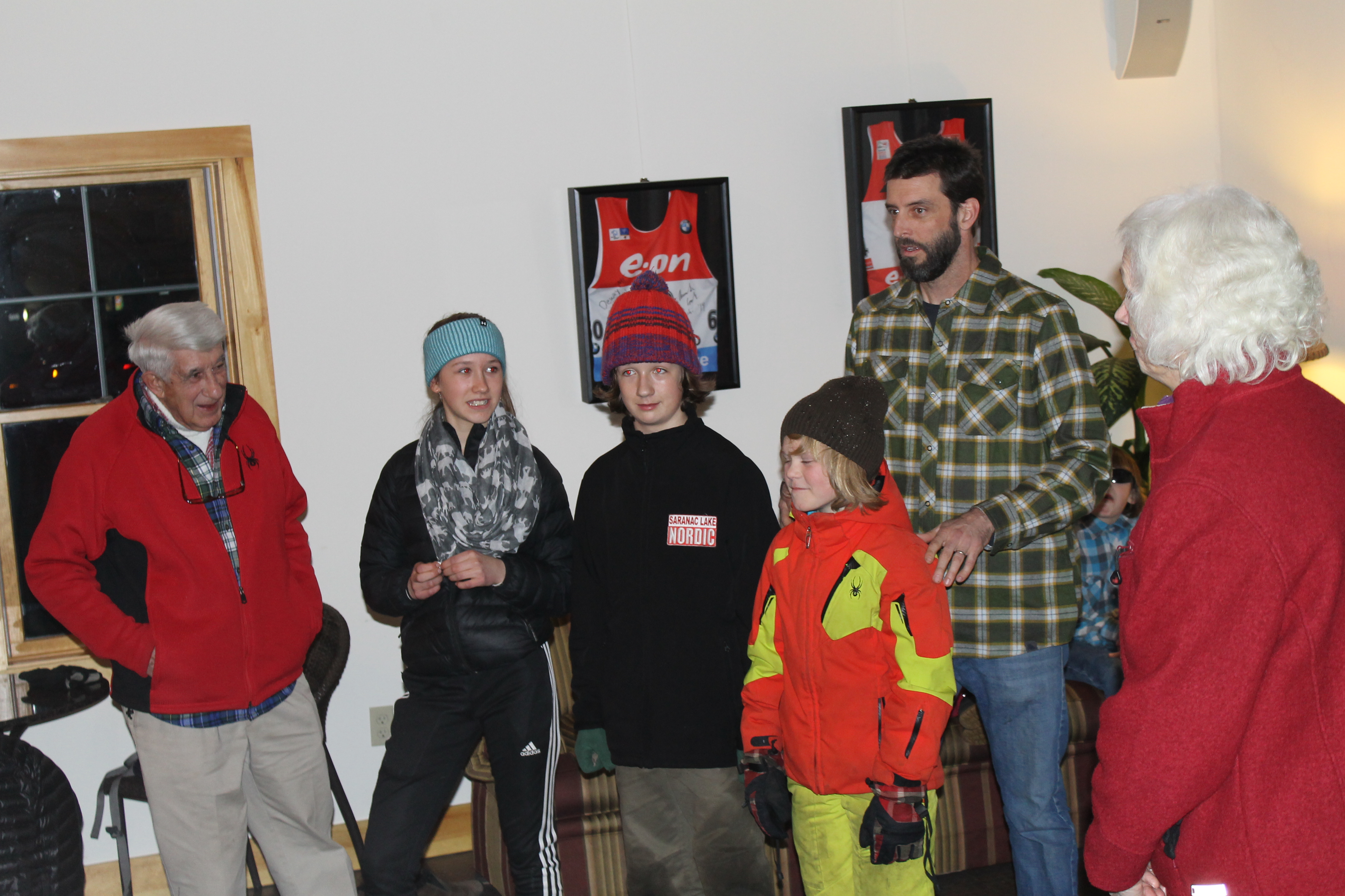 Harrietstown and Saranac Lake residents gathered at Dewey Mountain Friday evening to send off Saranac Lake's three athletes heading to the Innsbruck International Children's Winter Games in Austria.