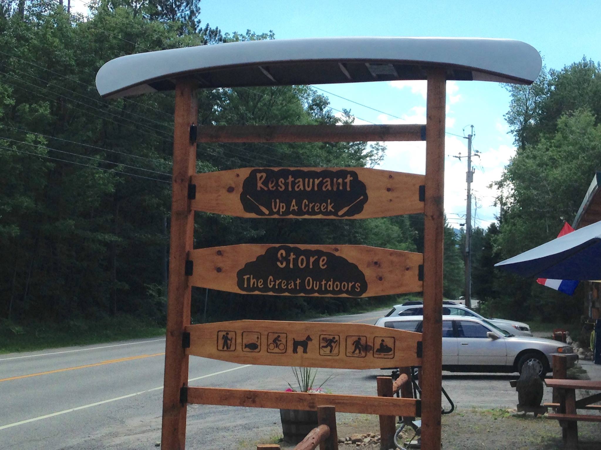 Businesses have gotten into the act, too! (Examples below - the new sign at Up A Creek Restaurant and the outdoor terrace added at the Hungry Trout.)