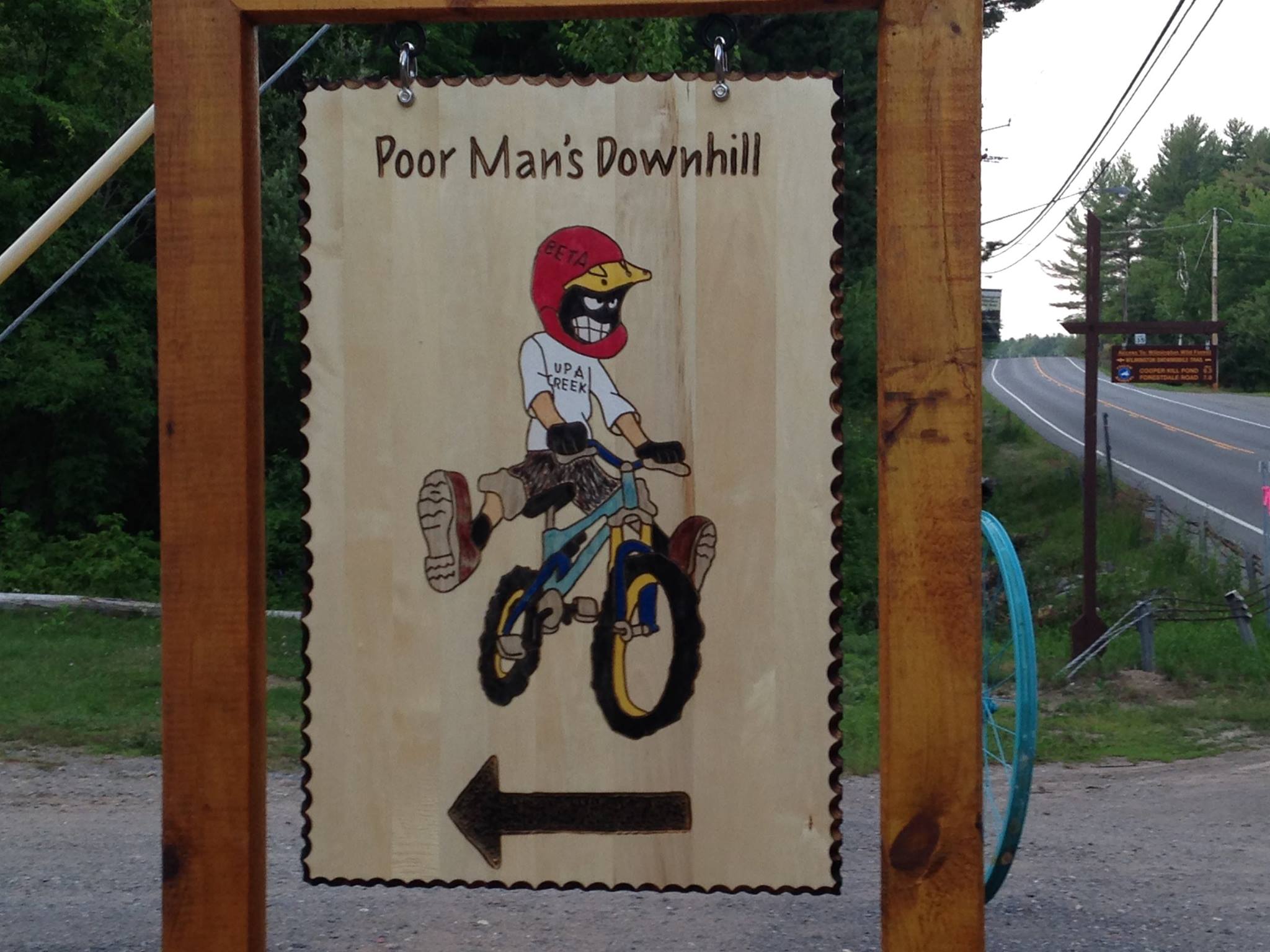 The Poor Man’s Downhill sign has been designed for this popular biking trail.