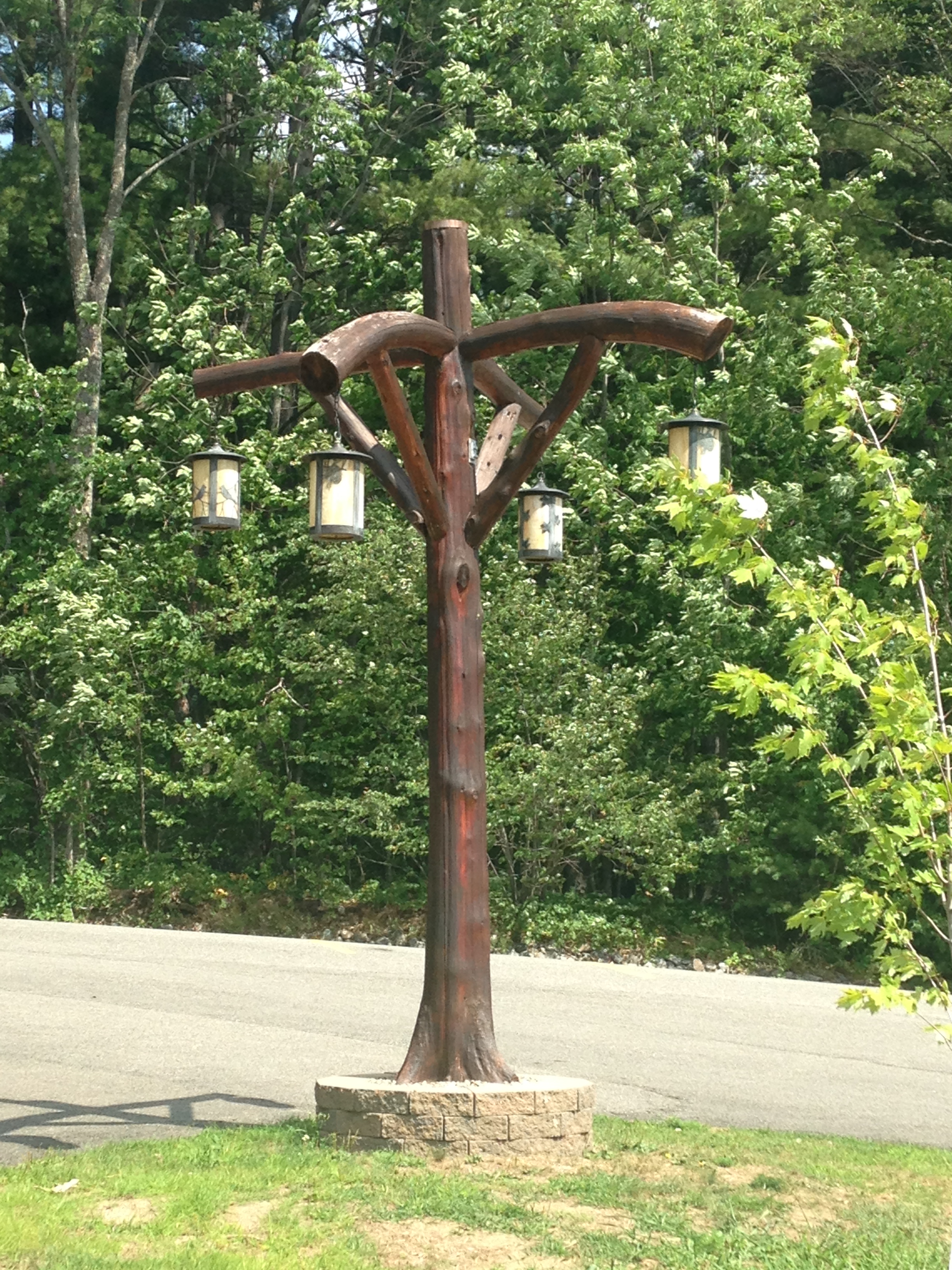 Welcome signs reflect the town's Adirondack location and feature Whiteface Mountain!