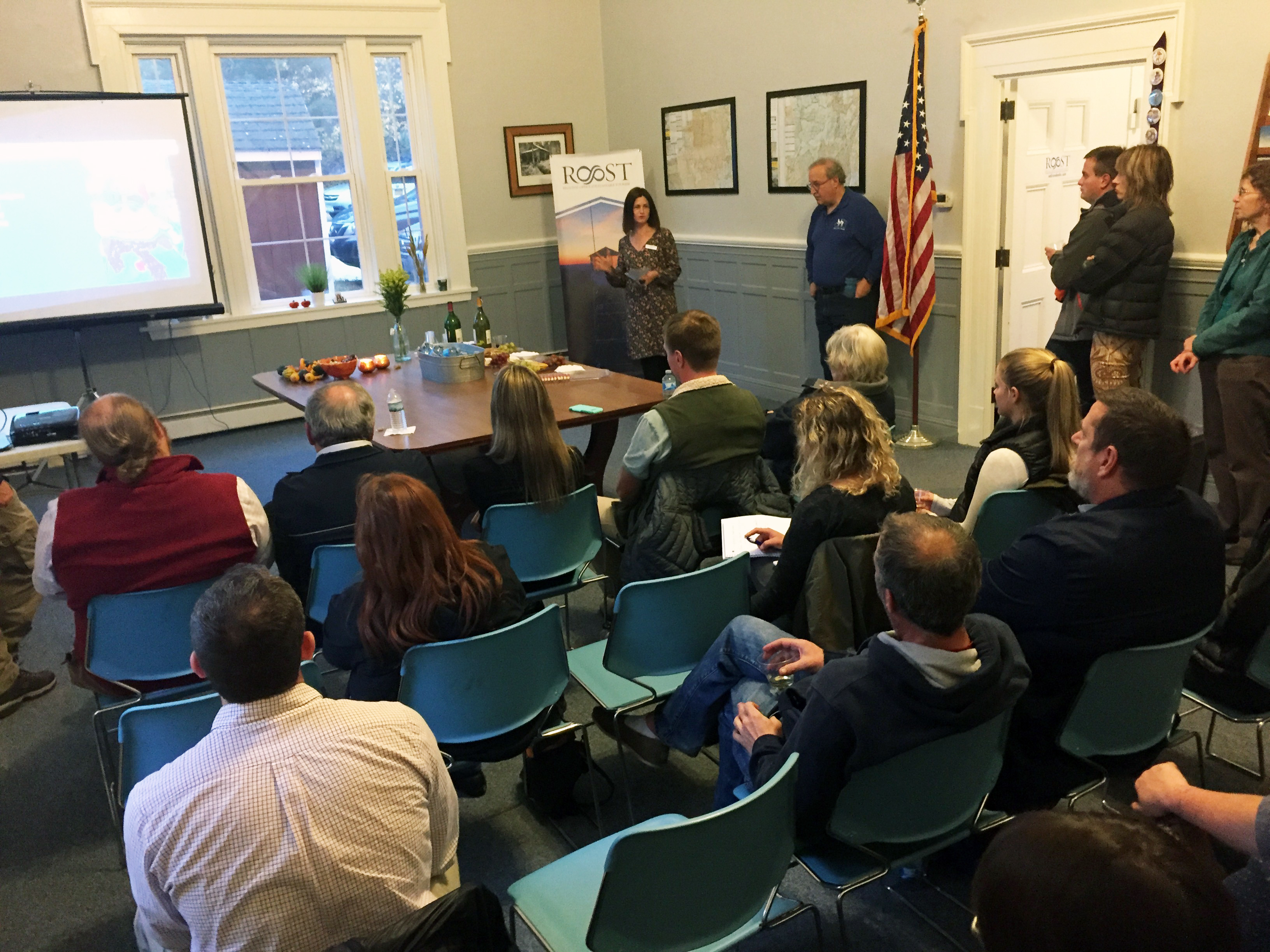 Regional Office of Sustainable Tourism (ROOST) representatives provided a destination marketing program status report to Saranac Lake area residents and officials last Thursday evening, Oct. 26. at the ROOST Saranac Lake office. The two hour event spurred many great questions from audience members about ROOST's scope of work and marketing strategies.