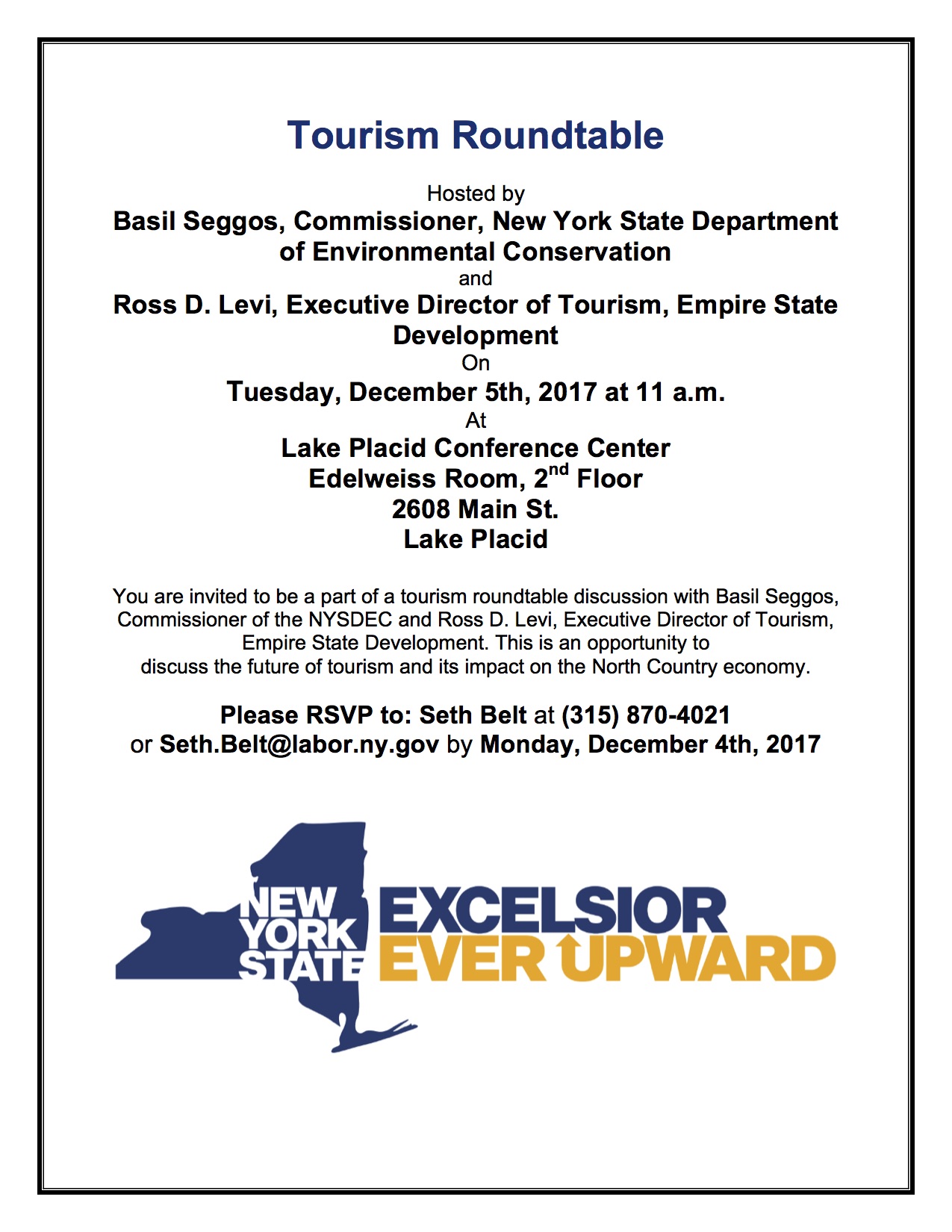 RSVP to New York State Tourism Roundtable held in Lake Placid